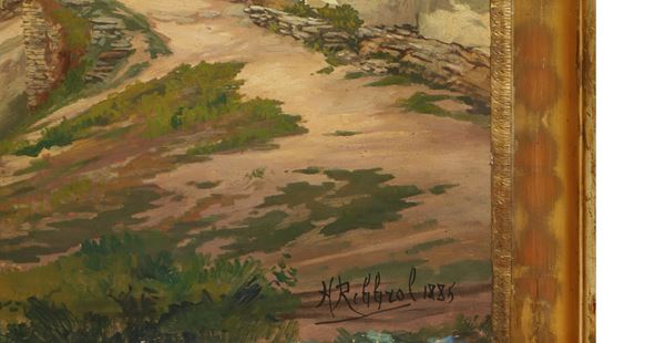 Signed lower right in a 19th century Sicilian half-barrel frame