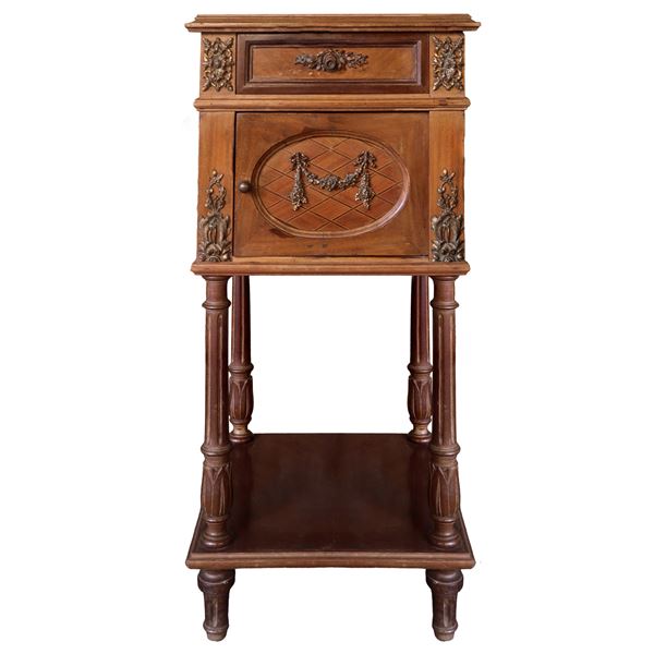 One drawer and one door at the front. Applied floral carvings.