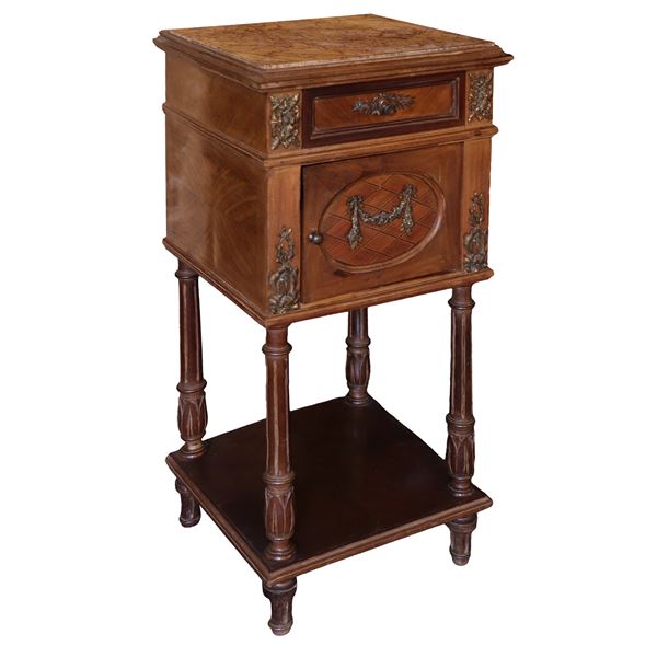 Bedside table with marble top with chamber pot, 20th century