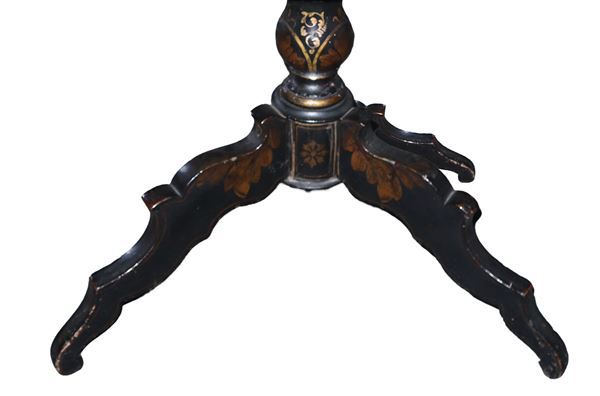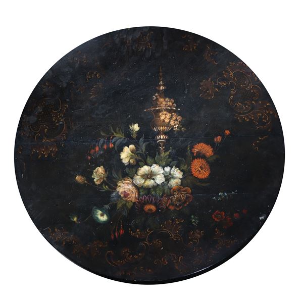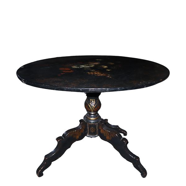 Black lacquered coffee table with painted flowers, 19th century