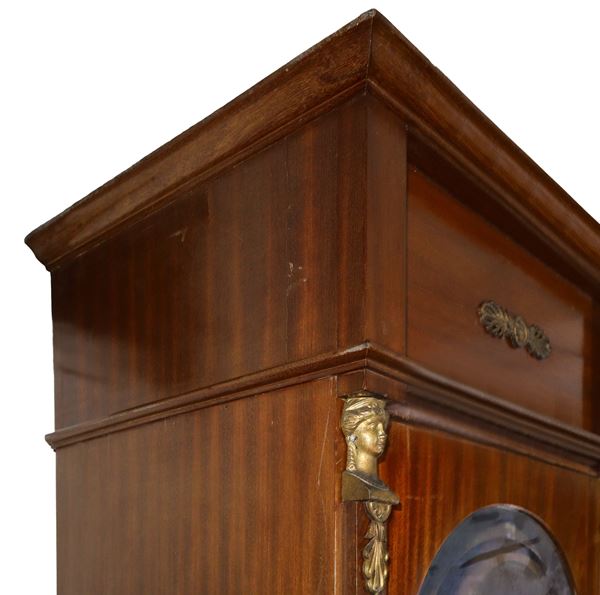 Neoclassical bronzes and caryatids applied to the base and doors.