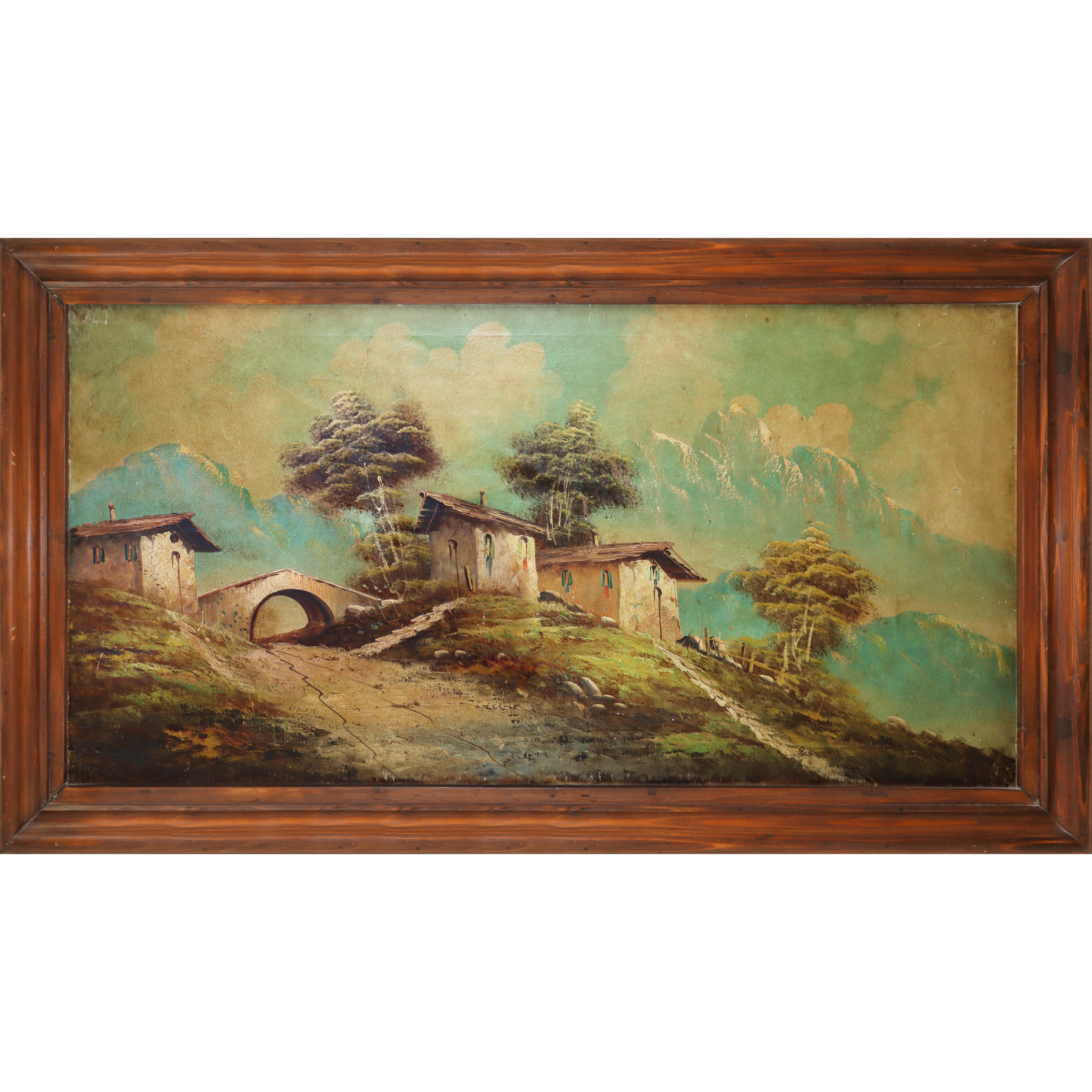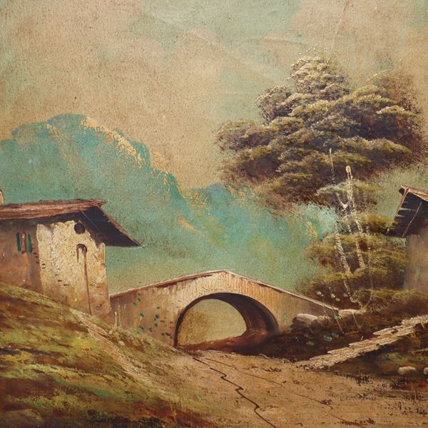 Landscape with rural house, bridge and snow-capped mountains, Late 19th century