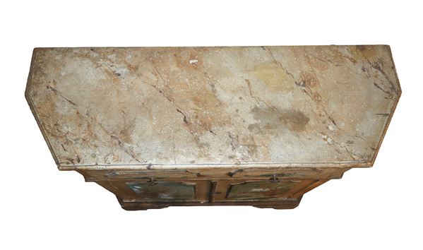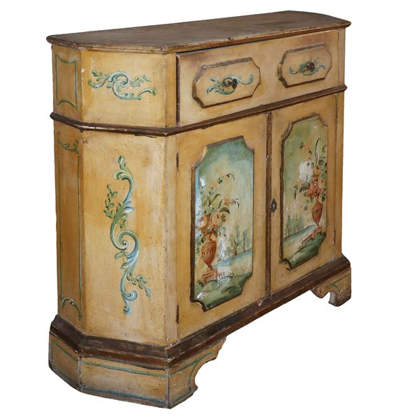 Sicily. With drawer under the top, two doors at the base painted with landscapes and vases with flowers.