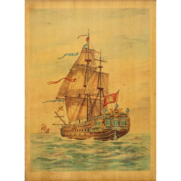 Pair of paintings depicting sailing ships
