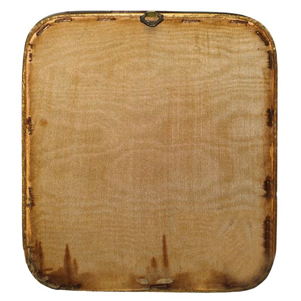 In a wooden and velvet frame. Frames slightly damaged and back slightly detached.