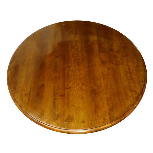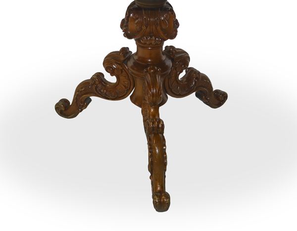 Round table in walnut wood with three-spoke base carved with leaves in the Louis Philippe style, Late 19th century