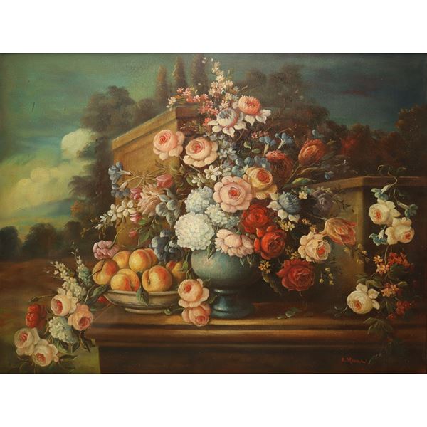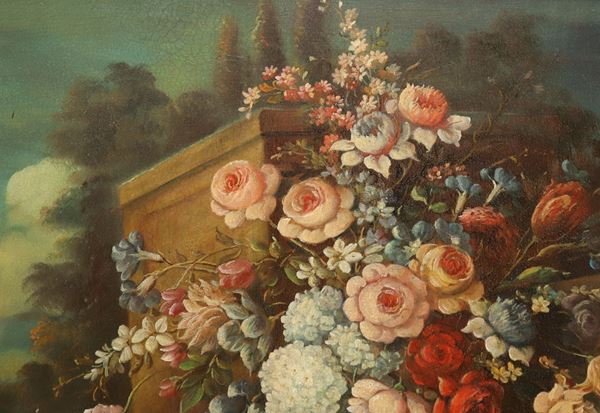 Still Life of Flowers with Landscape