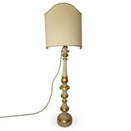White and gold lacquered candlestick with fan lampshade