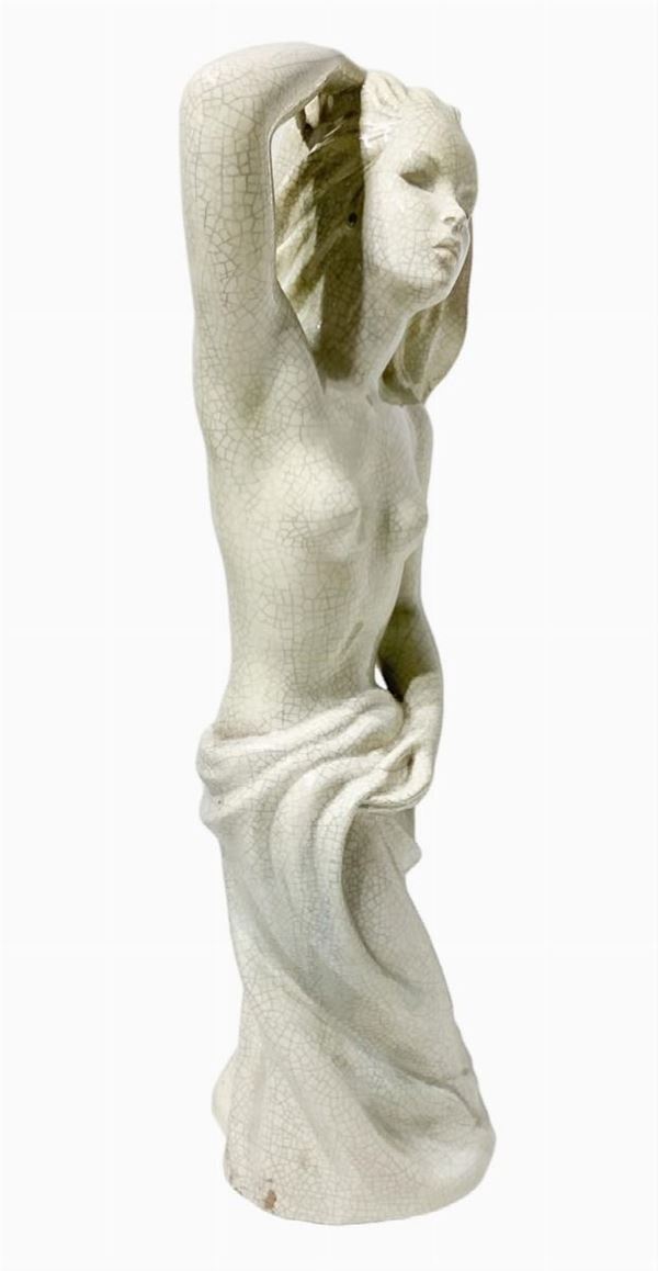 Large white paste sculpture with craquelure effect depicting. Signed on the base Le Bertetti Torino Italia, Emanuela n° 80.