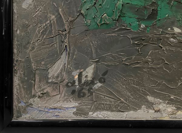 Giovanni Alicò was born in Catania in 1906. A self-taught painter, his approach to art is free from constraints or pre-constructed tracks. In 1935 he settled first in Naples and then in Milan. In 1942 he was present with a work at the XXIII Venice Biennale, and in the same year, he held his first solo exhibition at the Galleria Tornabuoni in Florence. This was followed, between 1948 and 1953, by six years of activity in Argentina, with three solo exhibitions in Buenos Aires and many participations in group exhibitions in various national salons in the cities of La Rioja, Santa Fè, Mendoza and Rosario. After returning to Italy, from the mid-1950s and throughout the following decade he held several solo exhibitions in Catania, Milan, Rome and Como. He was awarded the Suzzara Prize in 1955 with the work Peasant Resting, where the painter, freed from a cold realistic description and far from the neo-cubist schemes typical of the first post-war period, abandons himself to a painting of luministic suggestion, with large areas of green, grey, earth, supported by a dense pictorial material defined by a thick contour line. The painting is currently preserved in the Galleria Civica d'Arte Contemporanea in Suzzara. In 1957 he exhibited at the Galleria il Pincio in Piazza del Popolo in Rome, one of the most active realities in the panorama of art exhibitions, where Renato Guttuso and Carla Accardi also exhibited. He began his artistic career by depicting in his painting carts with colorful stories of the puppets using preferably flat colors, subsequently introducing delicate, vibrant colors into his palette, and focusing on themes pervaded by a marked spirituality. His favorite subjects are female figures, still lifes and landscapes. In the 1950s Giovanni Alicò approached his style to that of Guttuso, within the scope of social realism. His focus was on synthetic figurative painting, which proceeded by suggestions in general adherence to the themes of social realism. After 1960, an important poetics made of arabesques and light and chromatic effects, blurred movements entered his work. From 1967 onwards, anthropomorphic characters appeared on these backgrounds, a sort of ghosts, which hovered in the space of the composition. The artist's final production was instead characterised by paintings where signs, repeated geometric shapes and large patches of colour were rendered with intense and vivid colours, leading to informal and material results. Giovanni Alicò died in Catania in 1971. After his death, an important retrospective was set up at the Palazzo della Borsa in Catania in 1973. Many of his works are present in important private collections in Europe and America and in various art foundations.