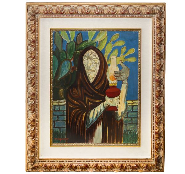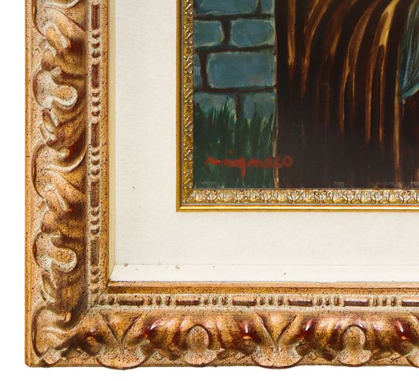 Signed on the front lower left. On the back stamp of the General Catalogue and Stamp of the Castello Art Gallery. Registered with repertory number 6041-B in the General Catalogue of Giuseppe Migneco. Certified by Nicola Luciani as curator of the general catalogue of the works of G. Migneco.