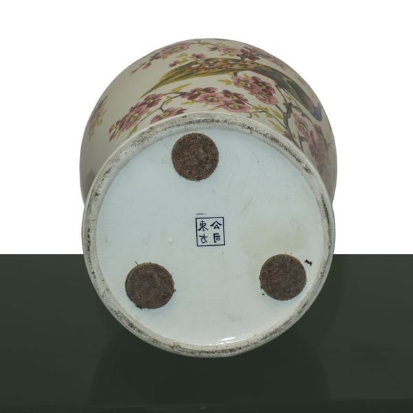 Chinese porcelain vase with white base and polychrome painting signed on the base and on the front