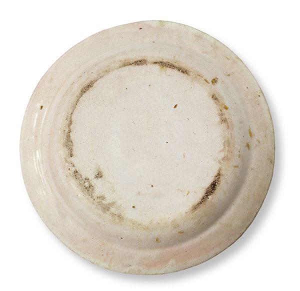 Caltagirone ceramic plate sponged manganese and blue with flower in the center, early 20th century