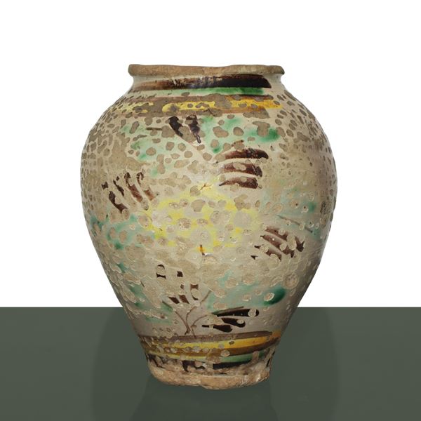 Caltagirone ceramic vase decorated with flower, late 19th century