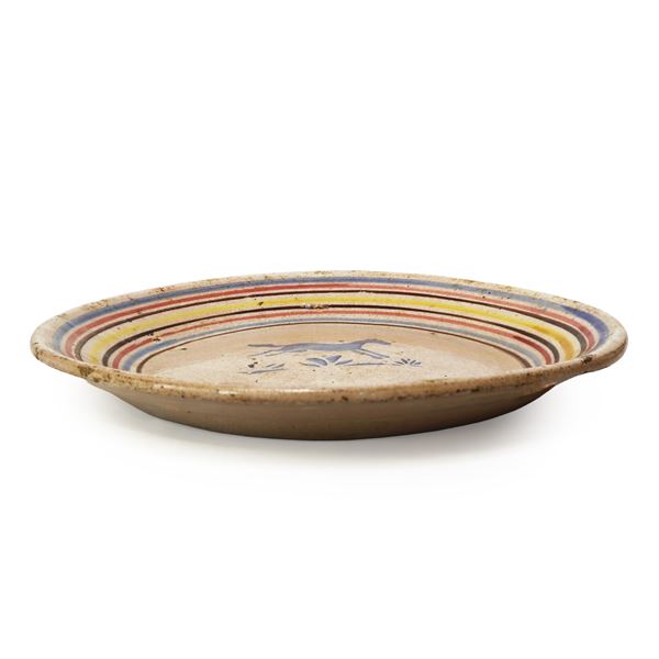 Caltagirone majolica plate decorated in polychrome with a running horse in the centre, early 20th century