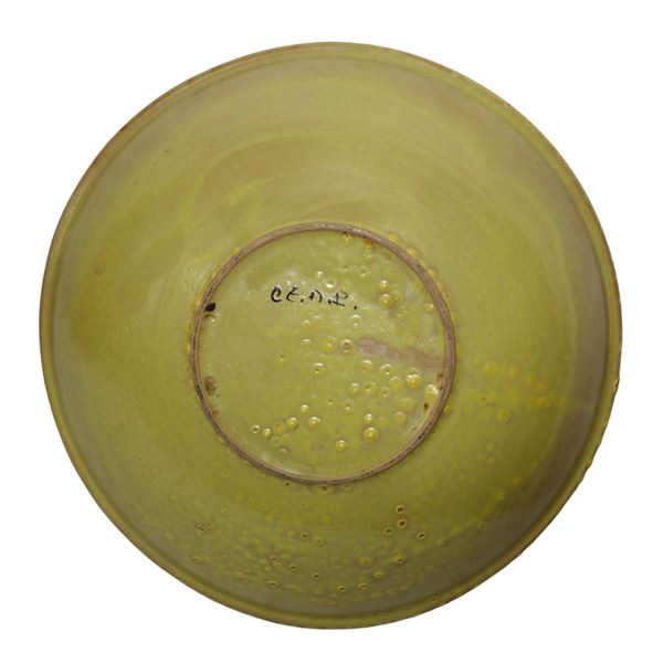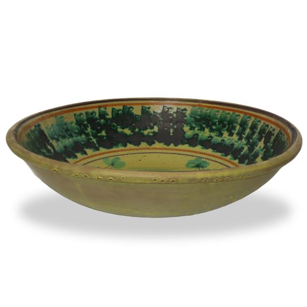 Caltagirone plate in decorated and enameled majolica with a depiction of boats, 20th century