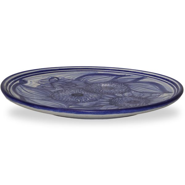 Majolica plate in shades of blue with sunflowers, '89
