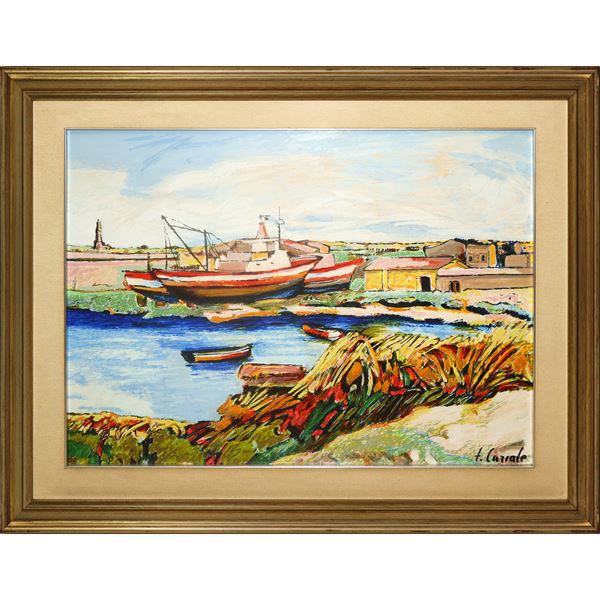 Signed lower right, Oil on canvas applied to board, in frame h 59X70.5 cm without frame h 23X38 cm