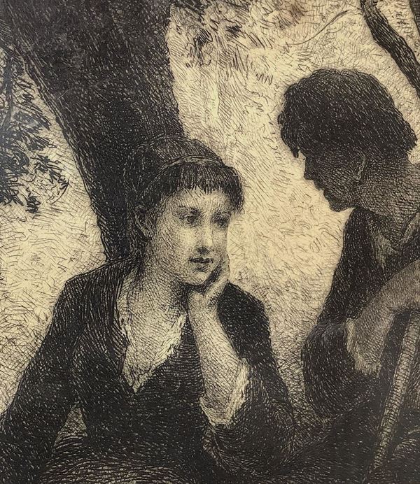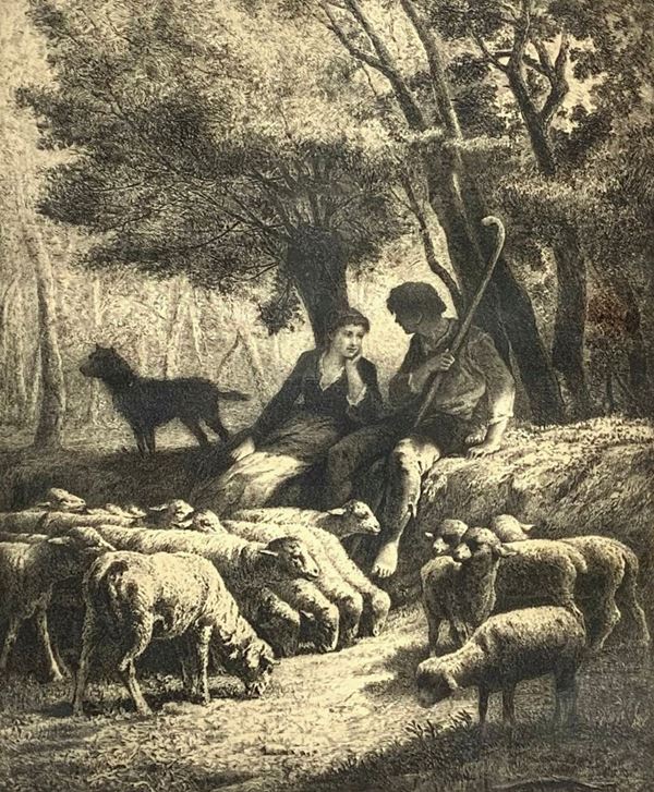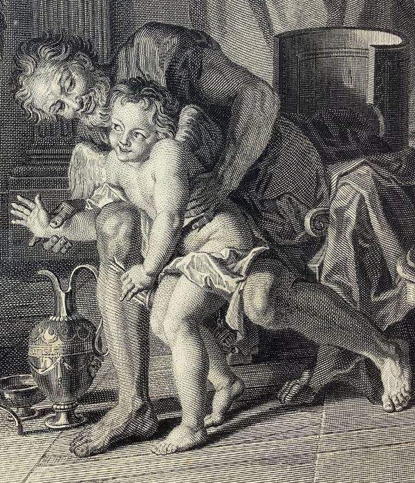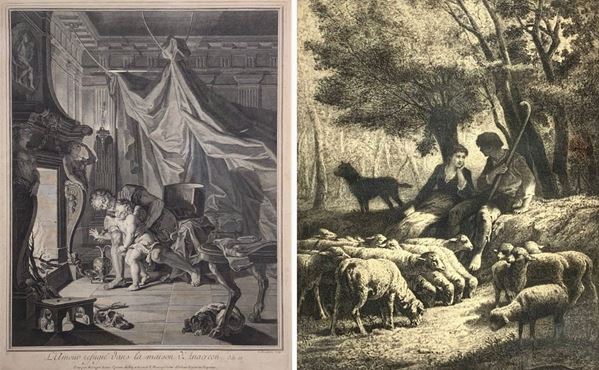 Pair of engravings depicting love in the house of Anacreon and pastoral scene , 18th century