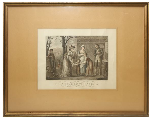 Engraving ''The Lady of the Village''