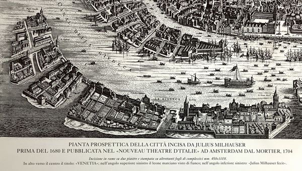 Engraving of Venice, Perspective plan of the city engraved by Julius Milhauer before 1680
