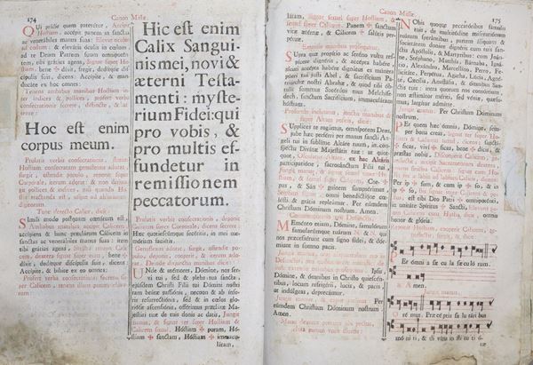 S. Piiu Pontificis Maximi Jussu editum, Clementis VIII and Urbani VIII Auctoritate recognitum, et missis sanctorum novissimis adauctum. Venice, ex typograpgia Joannis Antonii Pezzana. There are foxings and fraying