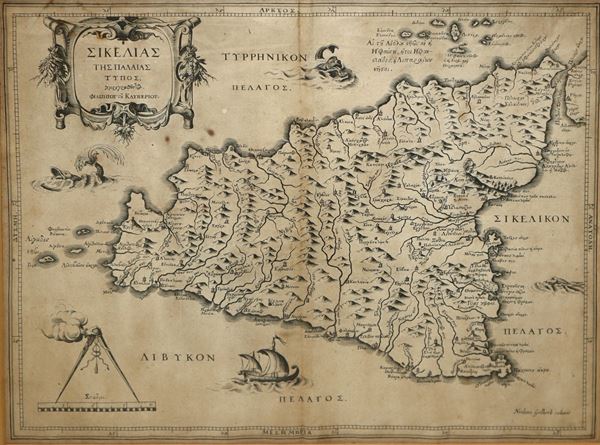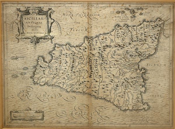 Pair of geographical maps of Sicily, Siciliae Antiquae descriptio
