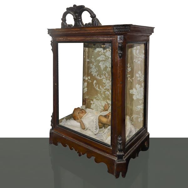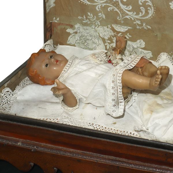 Baby Jesus in wax model contained in a wooden case, 19th century