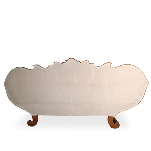 Boxed boat sofa with carved cornucopia armrests, first quarter of the 19th century