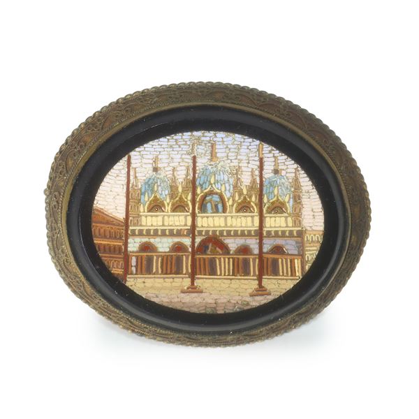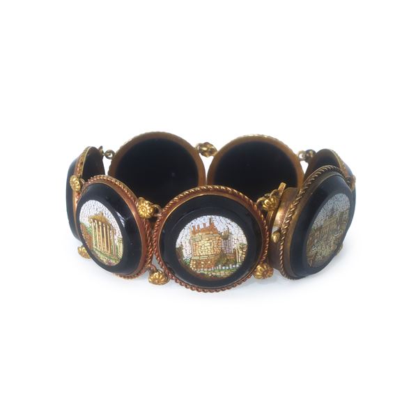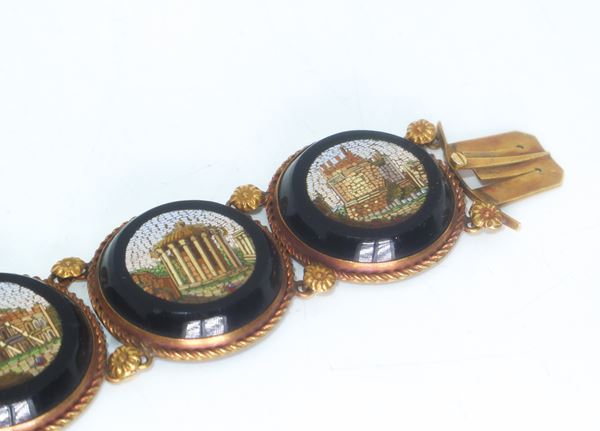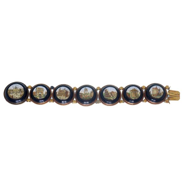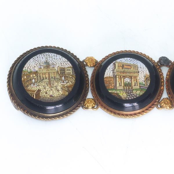 Bracciale a 7 micromosaici raffigurante monumenti romani con spilla con micromosaici raffigurante Duomo di Venezia, inizi XX secolo