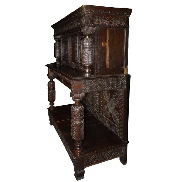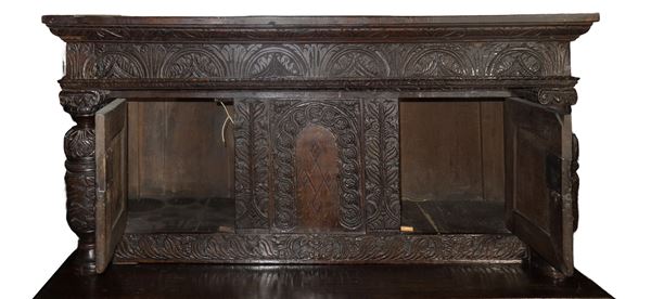 Double-bodied piece of furniture in neo-Renaissance style, entirely carved and sculpted, late 19th century