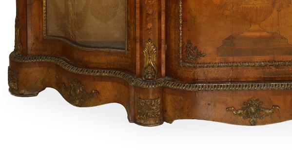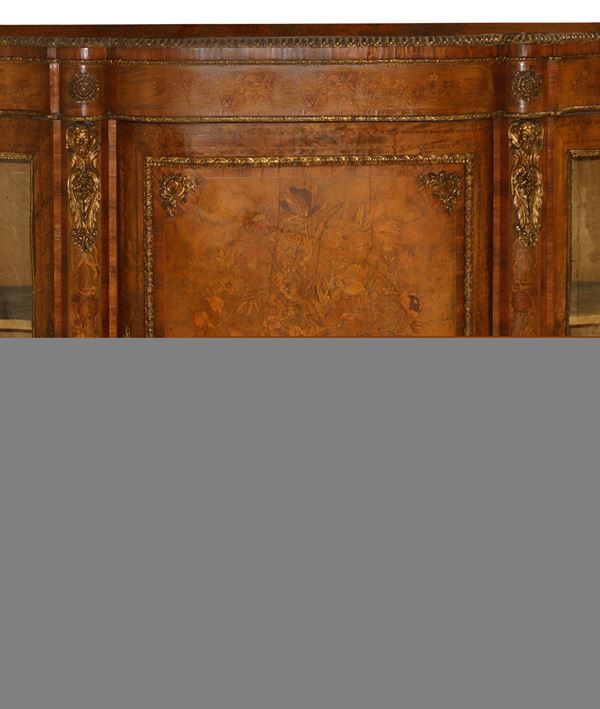 Napoleon III etagere in walnut root with light wood inlays and applied bronzes, 19th century