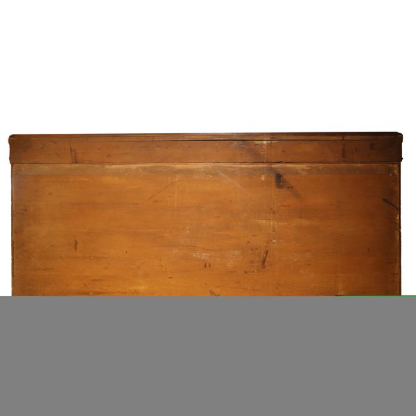 Central wooden door with inlays and glass doors on the sides (one of the two glasses has a break)