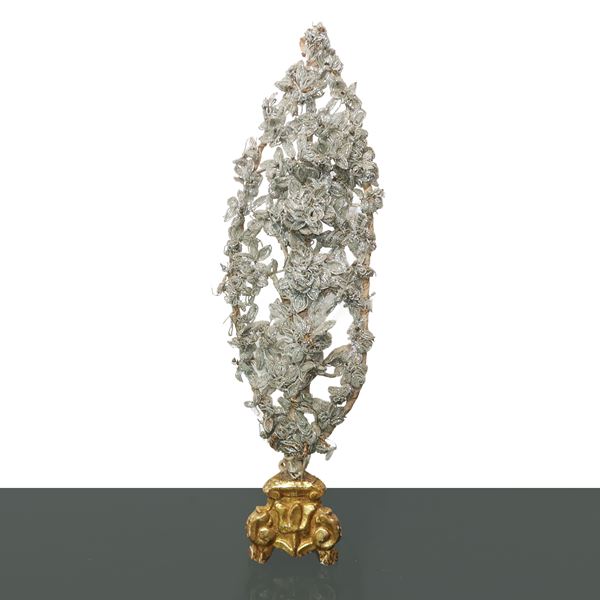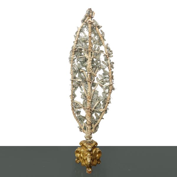 Pair of votive palms with gilded wooden base, Early 1800s