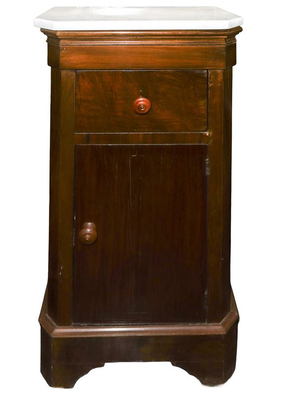 Pair of wooden bedside tables with white marble on the top, late 19th century