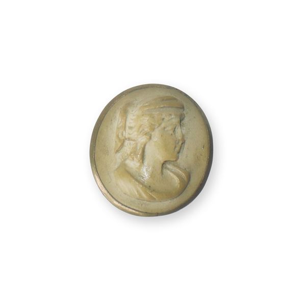 Polsini da camicia scolpiti in lava cameo con soggetti di teste romane, XIX secolo