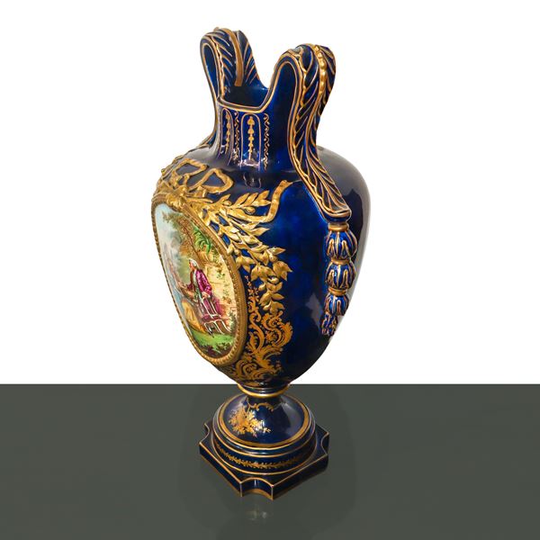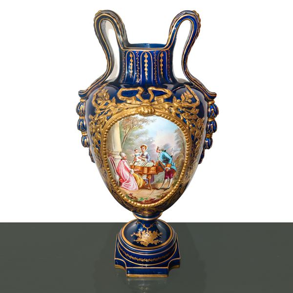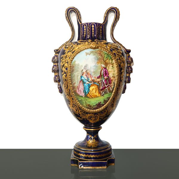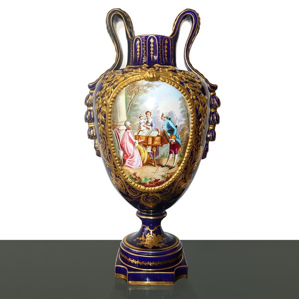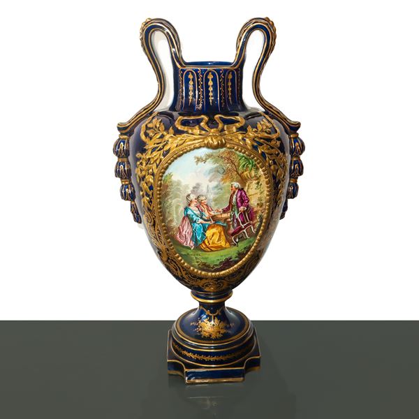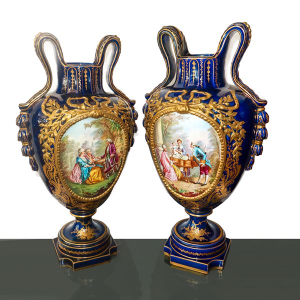 Pair of porcelain vases with gallant scenes painted on the front, 18th century