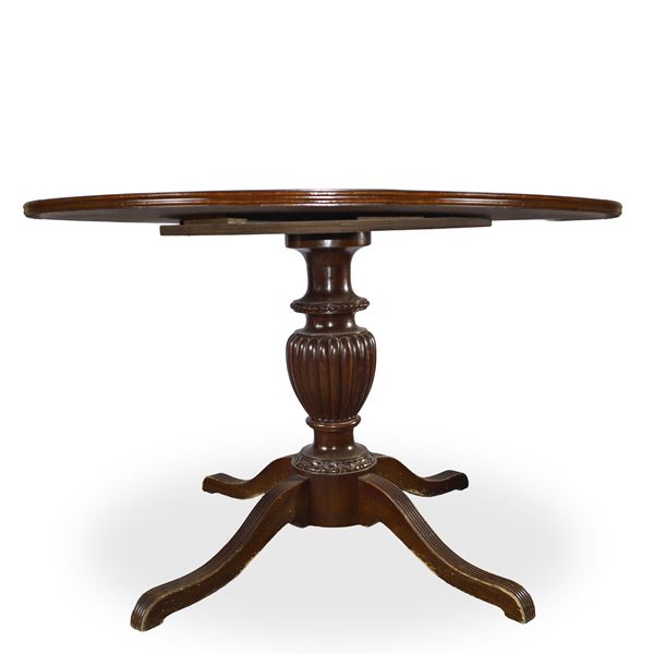 Table with 4-star base and round top with globular wooden support, early 20th century