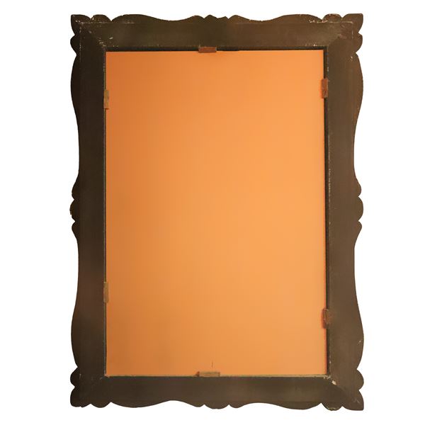 Tray mirror in chiseled and gilded wood with mecca, 20th century
