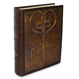 N°6 Volumes bound in 3 volumes corresponding to the 3 canticles, hell purgatory and paradise, with 100 plates illustrated by Salvador Dalì. Deluxe edition with leather binding and embossed copper covered plate, gold title on the spines.