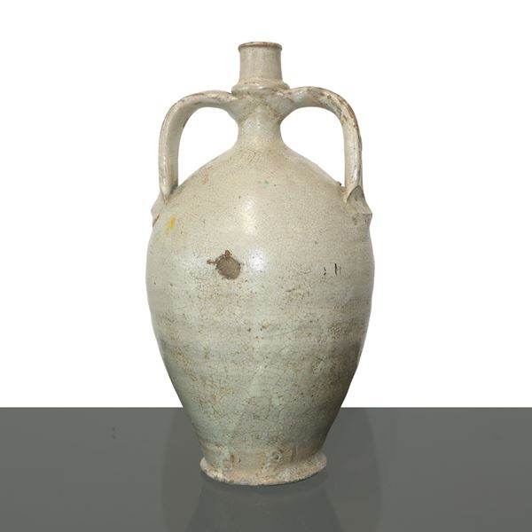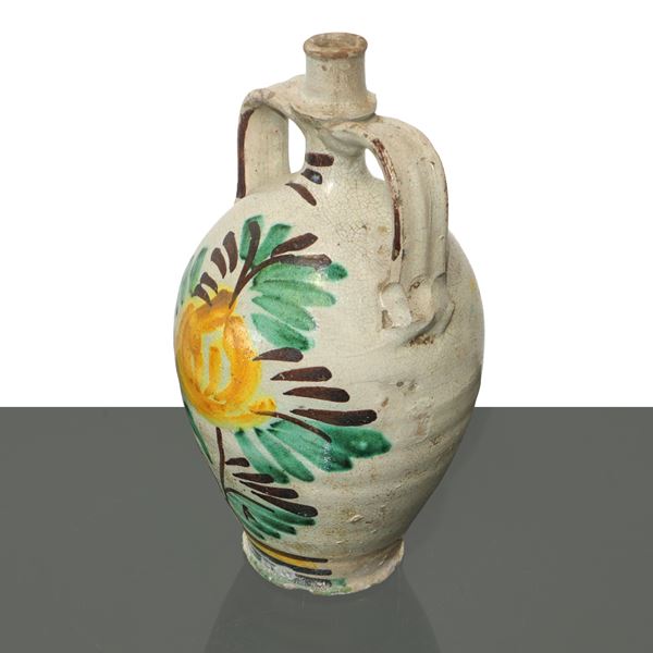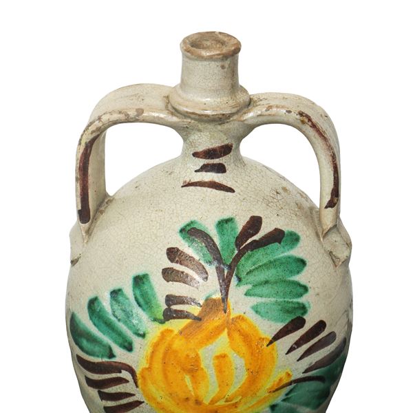 Bummulo in Caltagirone majolica with polychrome flower painted on the front, late 19th/20th century