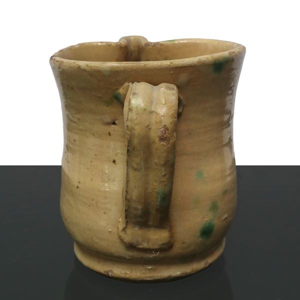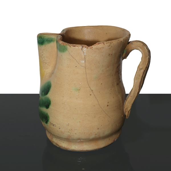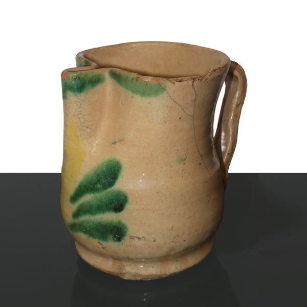 Cannata in polychrome miaolica from Caltagirone, enamelled with leaf decorations, 20th century