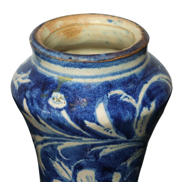 Ceramic Albarello from Caltagirone painted in shades of white and blue, 18th century