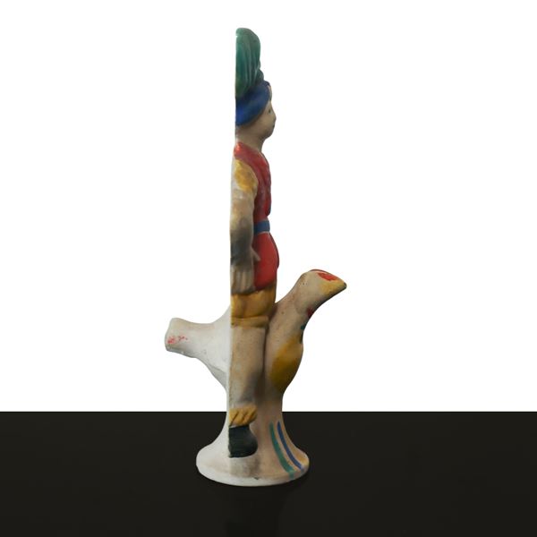 Polychrome whistle depicting a man on a hen