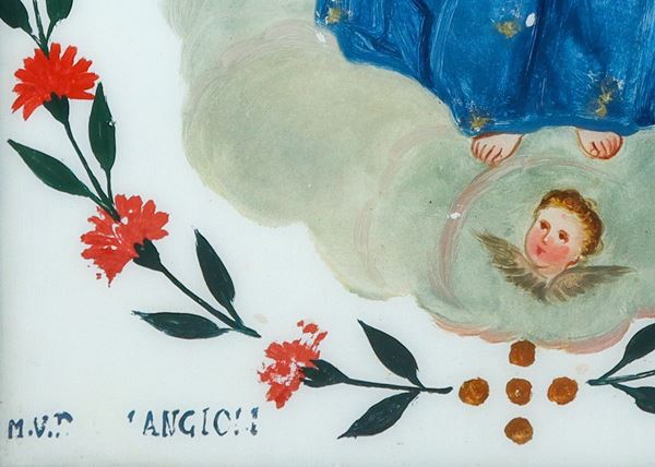 Art of "Pingi Santi", a form of popular expression rooted in the religious tradition developed in Sicily starting from the 17th century. It consists of painting sacred images on the back of glass plates following a procedure that is the opposite of traditional painting: the details are made first and then the backgrounds. This creates a brilliant and luminous image intended for private devotion in homes.