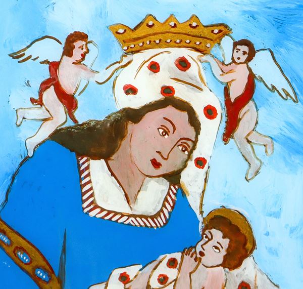Art of "Pingi Santi", a form of popular expression rooted in the religious tradition developed in Sicily starting from the 17th century. It consists of painting sacred images on the back of glass plates following a procedure that is the opposite of traditional painting: the details are made first and then the backgrounds. This creates a brilliant and luminous image intended for private devotion in homes.