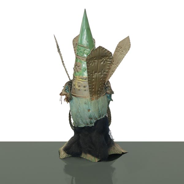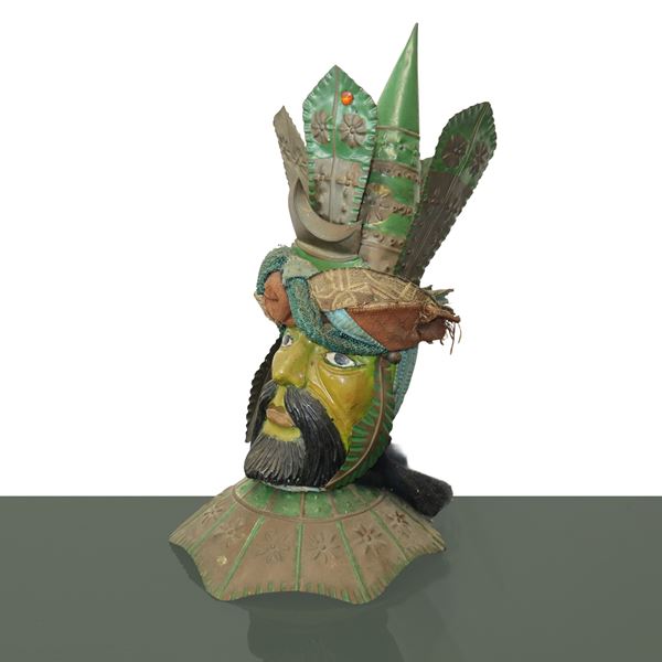 Moor's head carved in polychrome wood with metal structure, 19th century