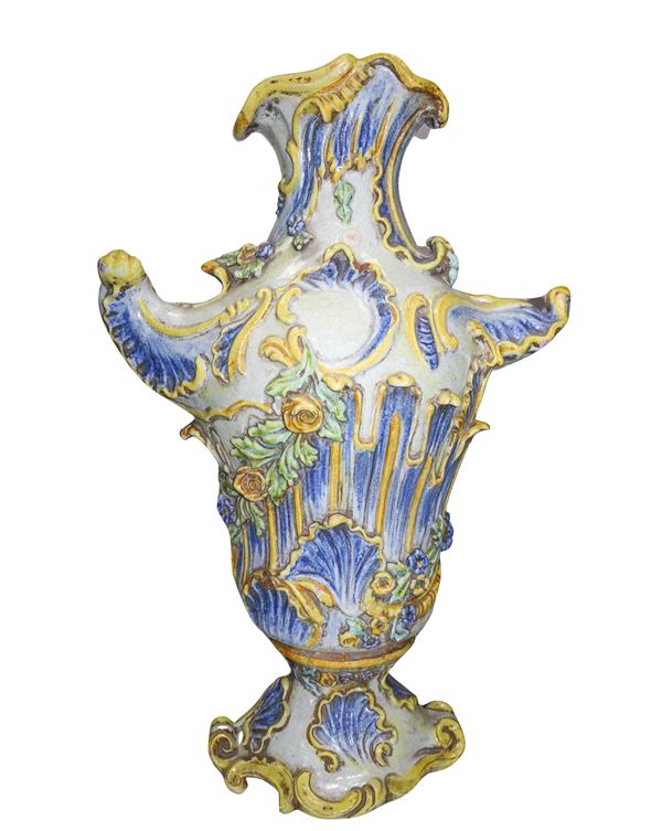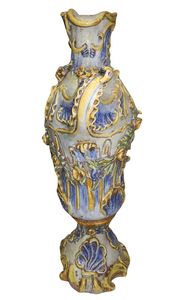 Ornamental vase in polychrome majolica from Caltagirone, published on Ragona, 18th Century