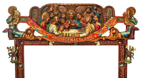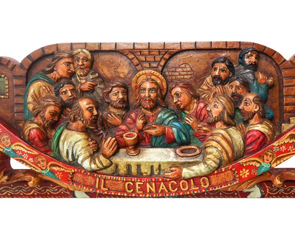The Last Supper, a sculpted and embossed cart key and painted in polychrome