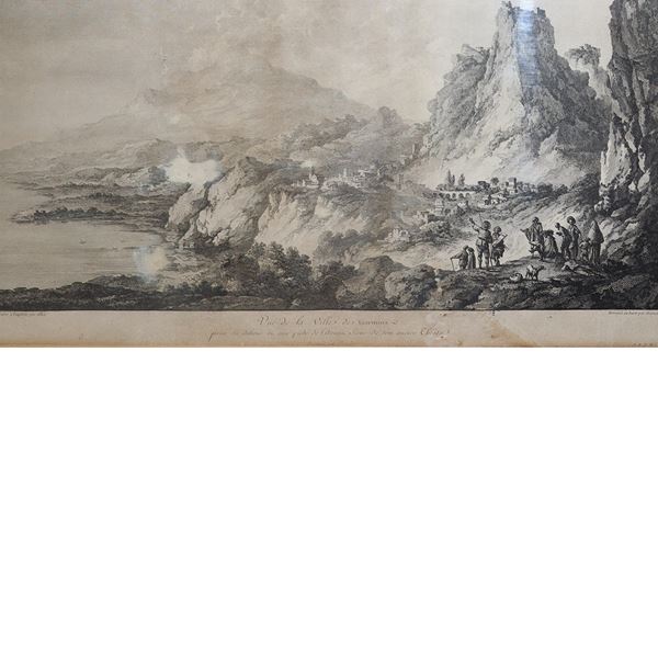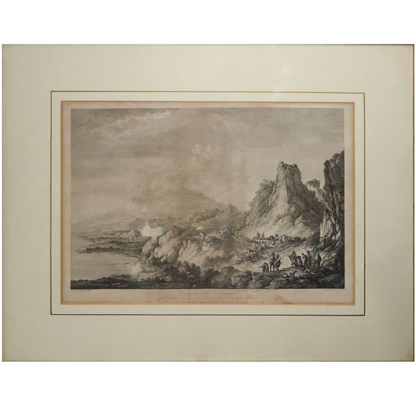 View of Taormina with Etna, engraving from the "Voyage pittoresque des isles de Sicile, de Malte et de Lipari", late 18th century